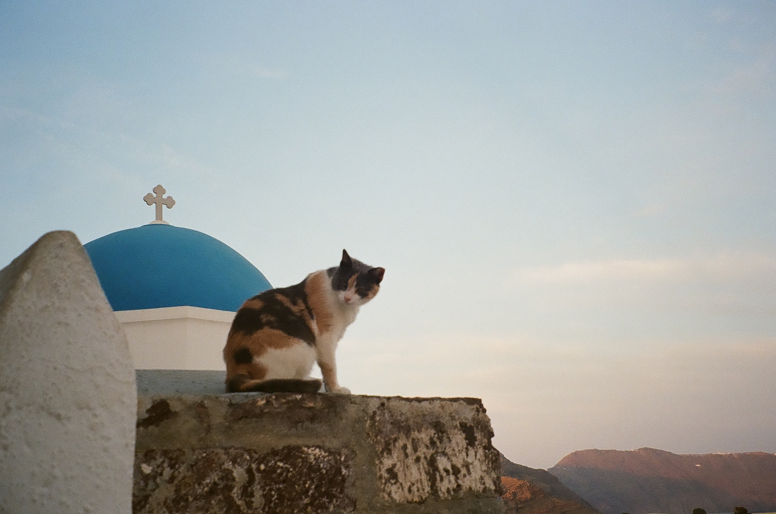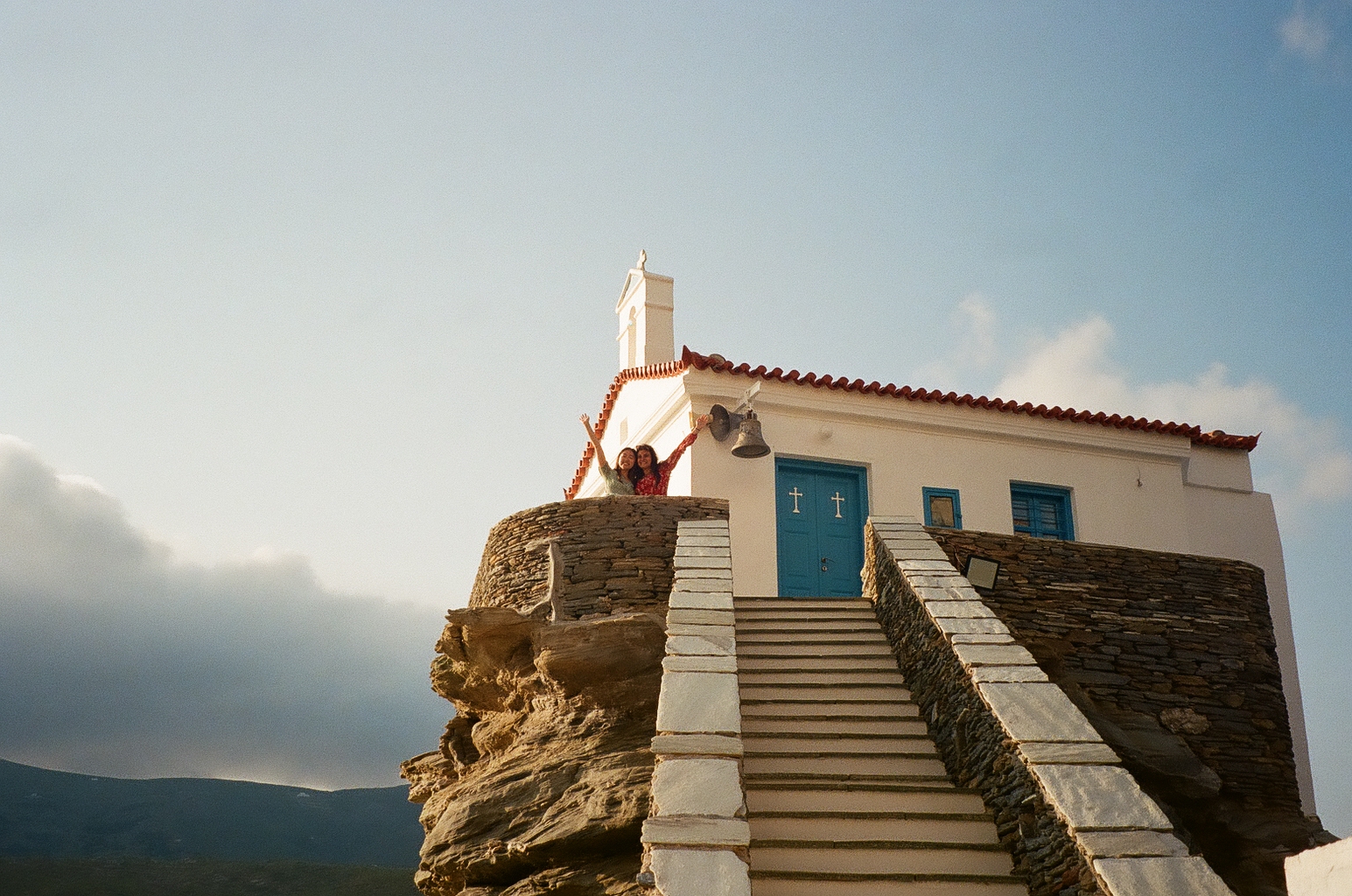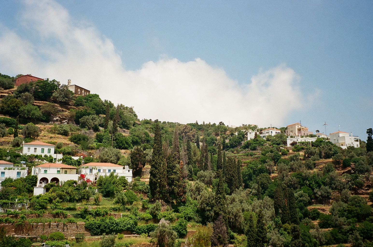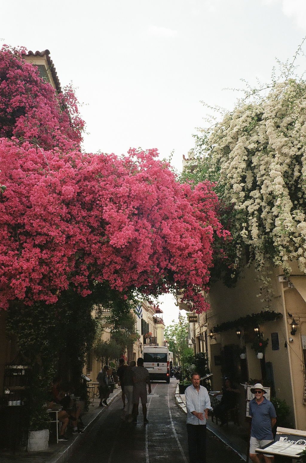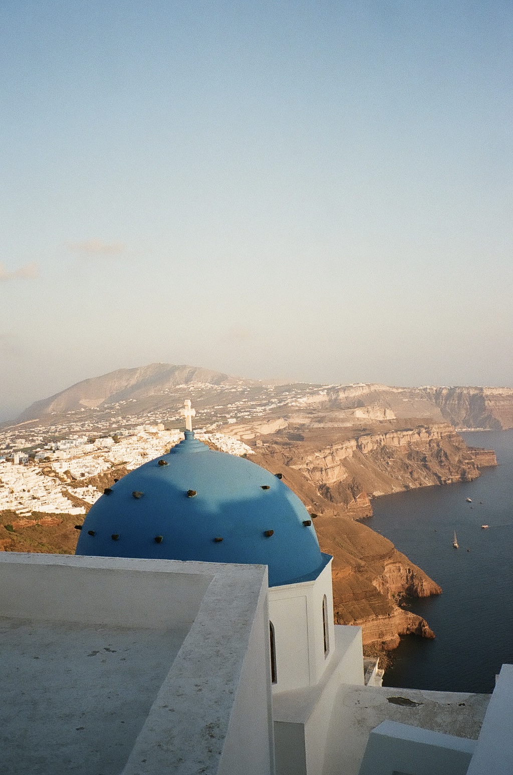 These film photos capture my trip to Greece in May 2023. Along with two of my closest friends, I visited Athens and two of the Greek islands: Andros and Santorini. In Athens, I was surprised by the hills and greenery of the busy city, finding flowers bursting out of street corners and garden gates. It was strange to be in the midst of such everyday things like motorcycles and graffiti and look up to see the ancient Acropolis above the city. I also enjoyed seeing the museums in Athens and remembering my favorite Greek myths. On Andros, the island my friend’s family comes from, I loved the green landscapes and the small villages on cliffs. One evening we walked to a tiny, gravity-defying white church perched on a rocky cliff over the ocean, accessible by a flight of white stairs. Andros felt peaceful and picturesque. Finally reaching Santorini from Andros after a multi-hour ferry ride, it felt like another planet. The volcanic island has a dry and harsh climate and sheer, rocky cliffs that rise out of the ocean. The classic white buildings of Thira and Oia sit at the very top of the island, hundreds of feet above the water. My favorite day on Santorini was the short boat trip we did to Nea Kameni, the small central island inside Santorini’s archipeligo. There, we hiked up a volcanic hill of lava rocks and jumped off the boat to swim in the sea.