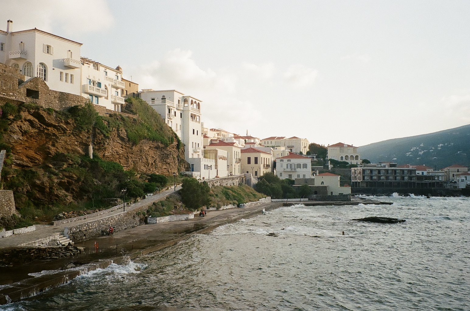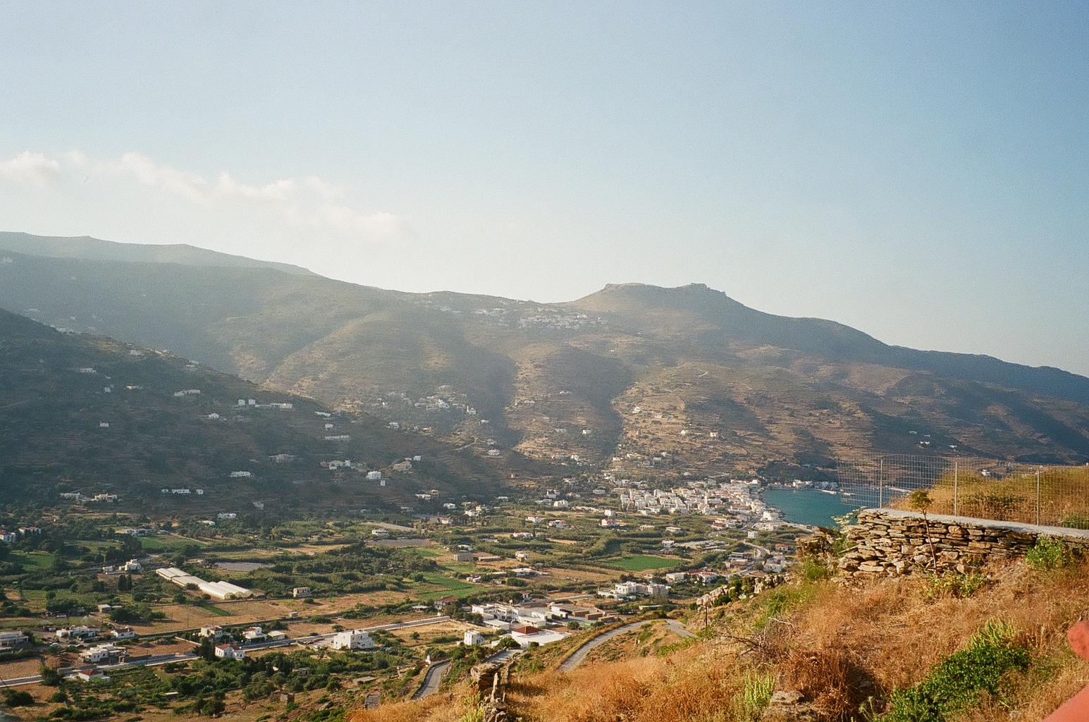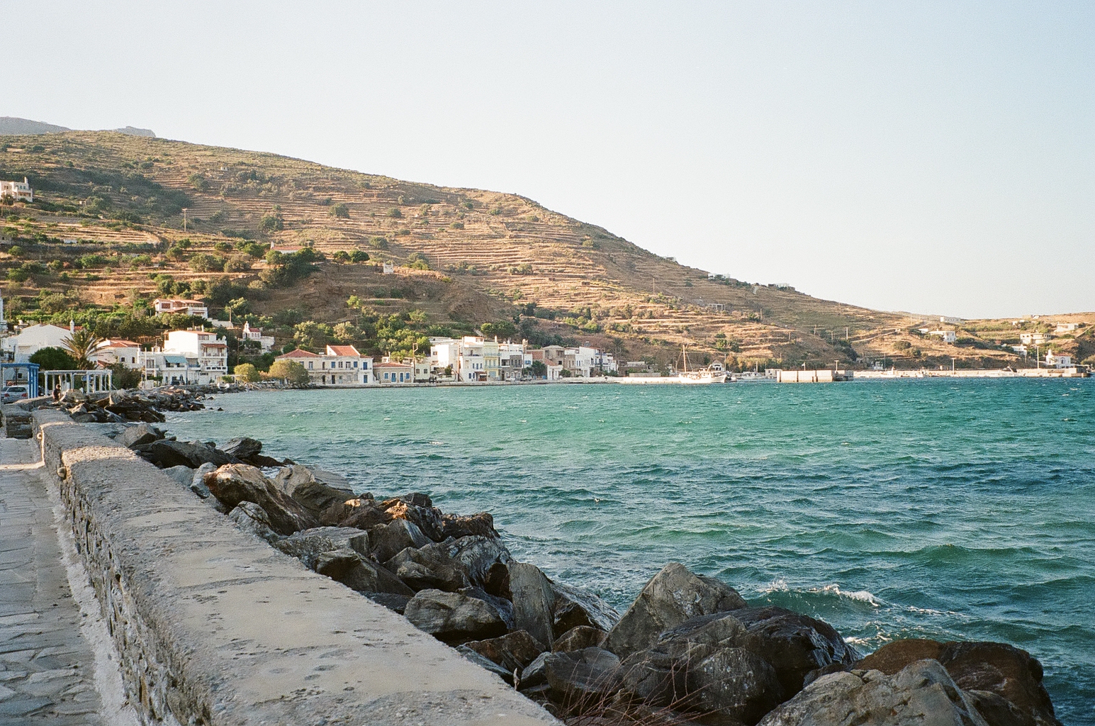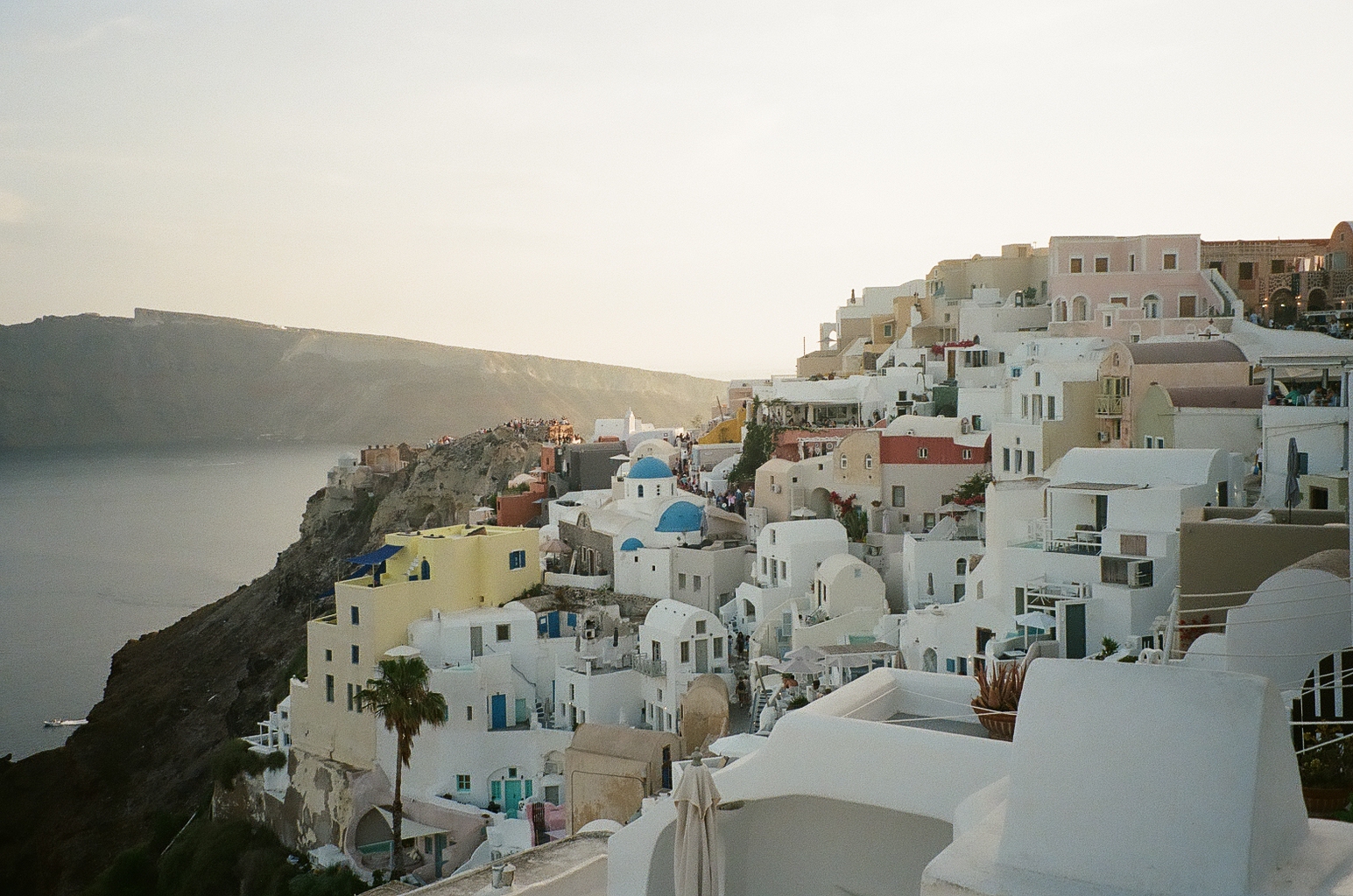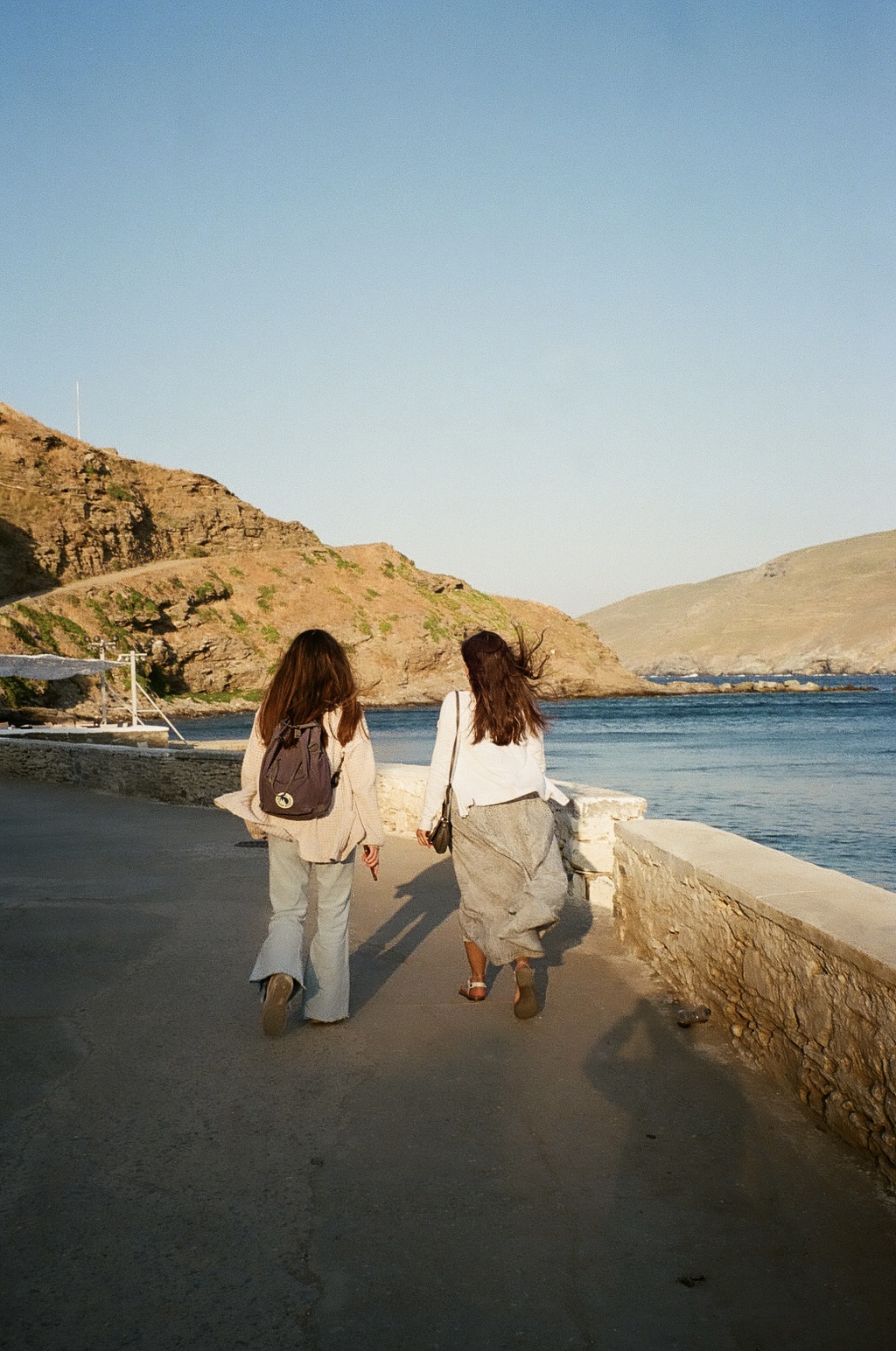These film photos capture my trip to Greece in May 2023. Along with two of my closest friends, I visited Athens and two of the Greek islands: Andros and Santorini. In Athens, I was surprised by the hills and greenery of the busy city, finding flowers bursting out of street corners and garden gates. It was strange to be in the midst of such everyday things like motorcycles and graffiti and look up to see the ancient Acropolis above the city. I also enjoyed seeing the museums in Athens and remembering my favorite Greek myths. On Andros, the island my friend’s family comes from, I loved the green landscapes and the small villages on cliffs. One evening we walked to a tiny, gravity-defying white church perched on a rocky cliff over the ocean, accessible by a flight of white stairs. Andros felt peaceful and picturesque. Finally reaching Santorini from Andros after a multi-hour ferry ride, it felt like another planet. The volcanic island has a dry and harsh climate and sheer, rocky cliffs that rise out of the ocean. The classic white buildings of Thira and Oia sit at the very top of the island, hundreds of feet above the water. My favorite day on Santorini was the short boat trip we did to Nea Kameni, the small central island inside Santorini’s archipeligo. There, we hiked up a volcanic hill of lava rocks and jumped off the boat to swim in the sea.
