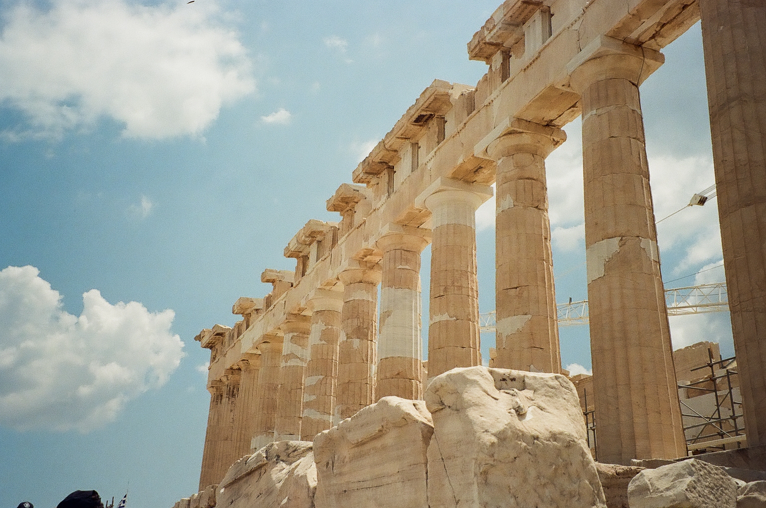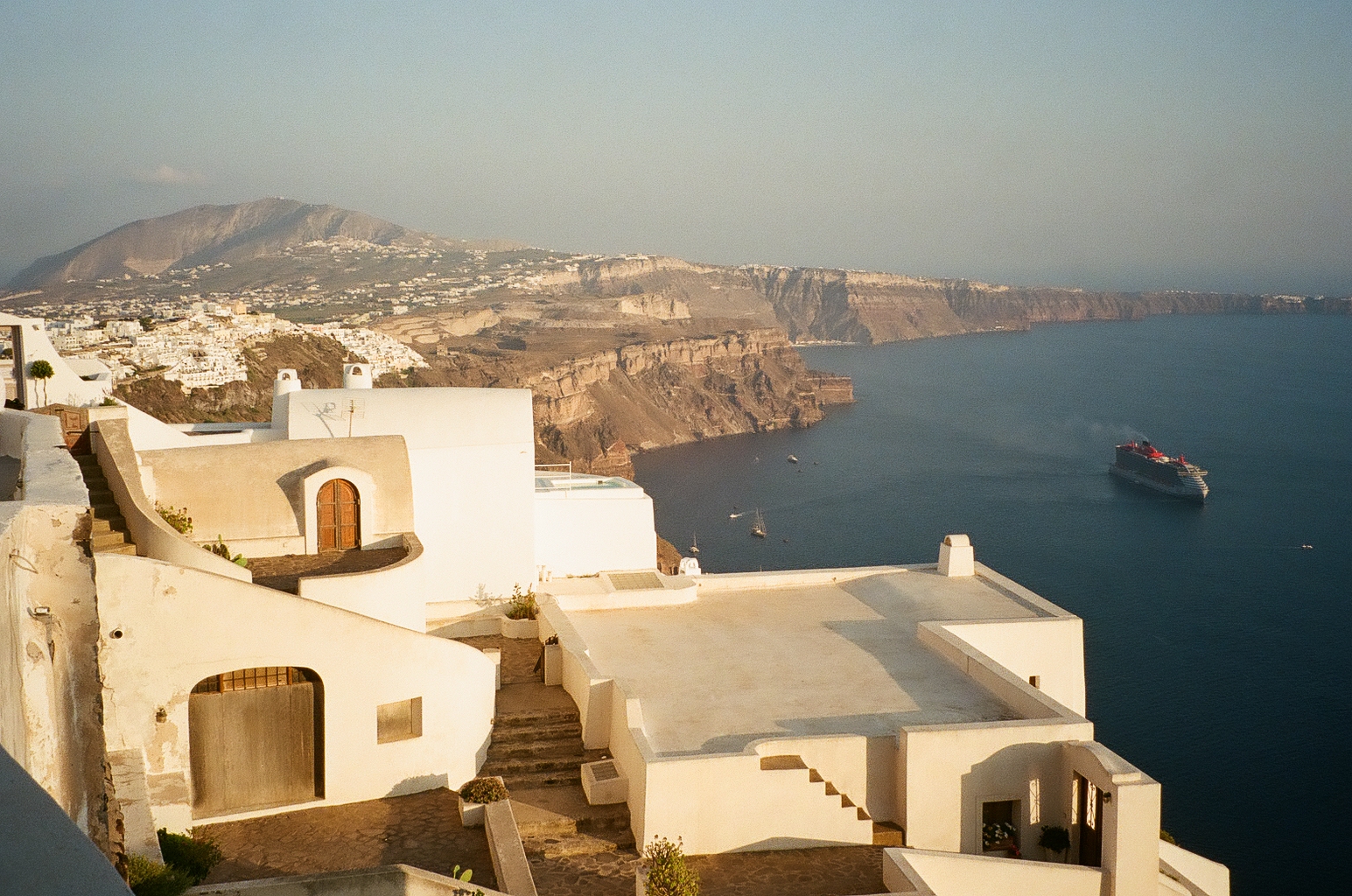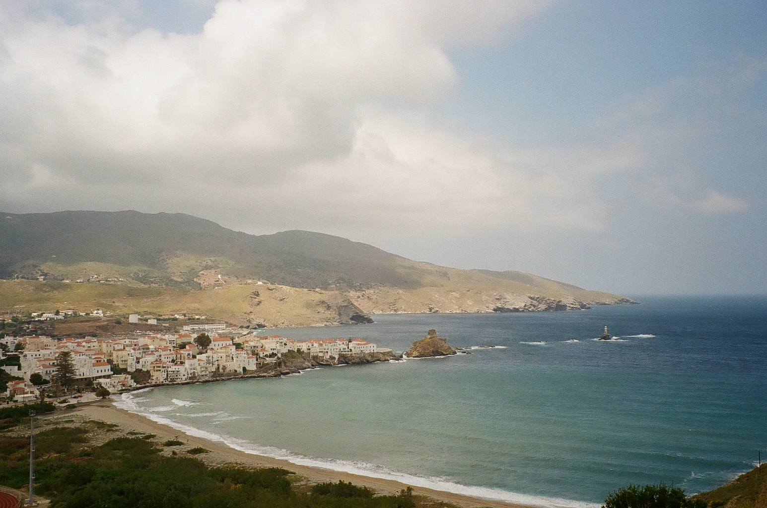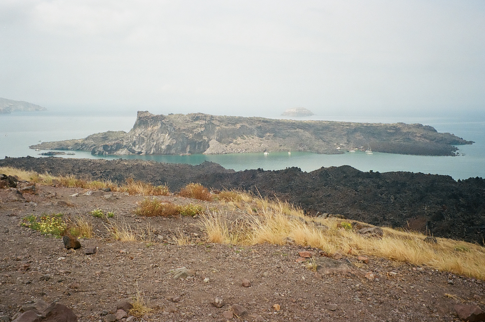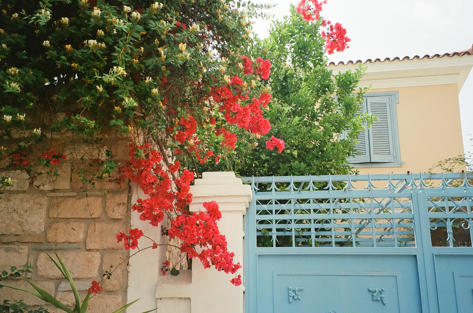 These film photos capture my trip to Greece in May 2023. Along with two of my closest friends, I visited Athens and two of the Greek islands: Andros and Santorini. In Athens, I was surprised by the hills and greenery of the busy city, finding flowers bursting out of street corners and garden gates. It was strange to be in the midst of such everyday things like motorcycles and graffiti and look up to see the ancient Acropolis above the city. I also enjoyed seeing the museums in Athens and remembering my favorite Greek myths. On Andros, the island my friend’s family comes from, I loved the green landscapes and the small villages on cliffs. One evening we walked to a tiny, gravity-defying white church perched on a rocky cliff over the ocean, accessible by a flight of white stairs. Andros felt peaceful and picturesque. Finally reaching Santorini from Andros after a multi-hour ferry ride, it felt like another planet. The volcanic island has a dry and harsh climate and sheer, rocky cliffs that rise out of the ocean. The classic white buildings of Thira and Oia sit at the very top of the island, hundreds of feet above the water. My favorite day on Santorini was the short boat trip we did to Nea Kameni, the small central island inside Santorini’s archipeligo. There, we hiked up a volcanic hill of lava rocks and jumped off the boat to swim in the sea.